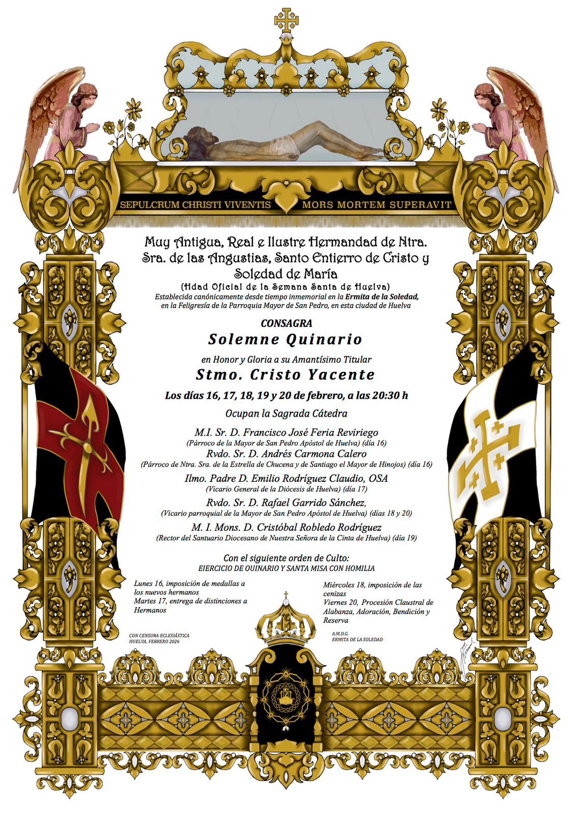 Como marcan nuestras reglas, iniciamos en la primera semana de Cuaresma el Solemne Quinario al Santo Cristo Yacente, de lunes 16 a viernes 20 a las 20:30 horas.